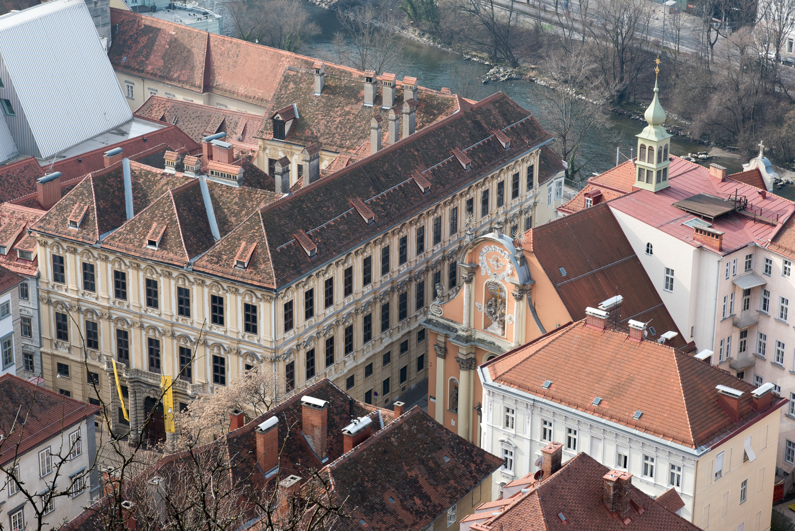 Vom “Kriegssteig” aus hatte man einen schönen Blick über die Dächer der Grazer Altstadt.