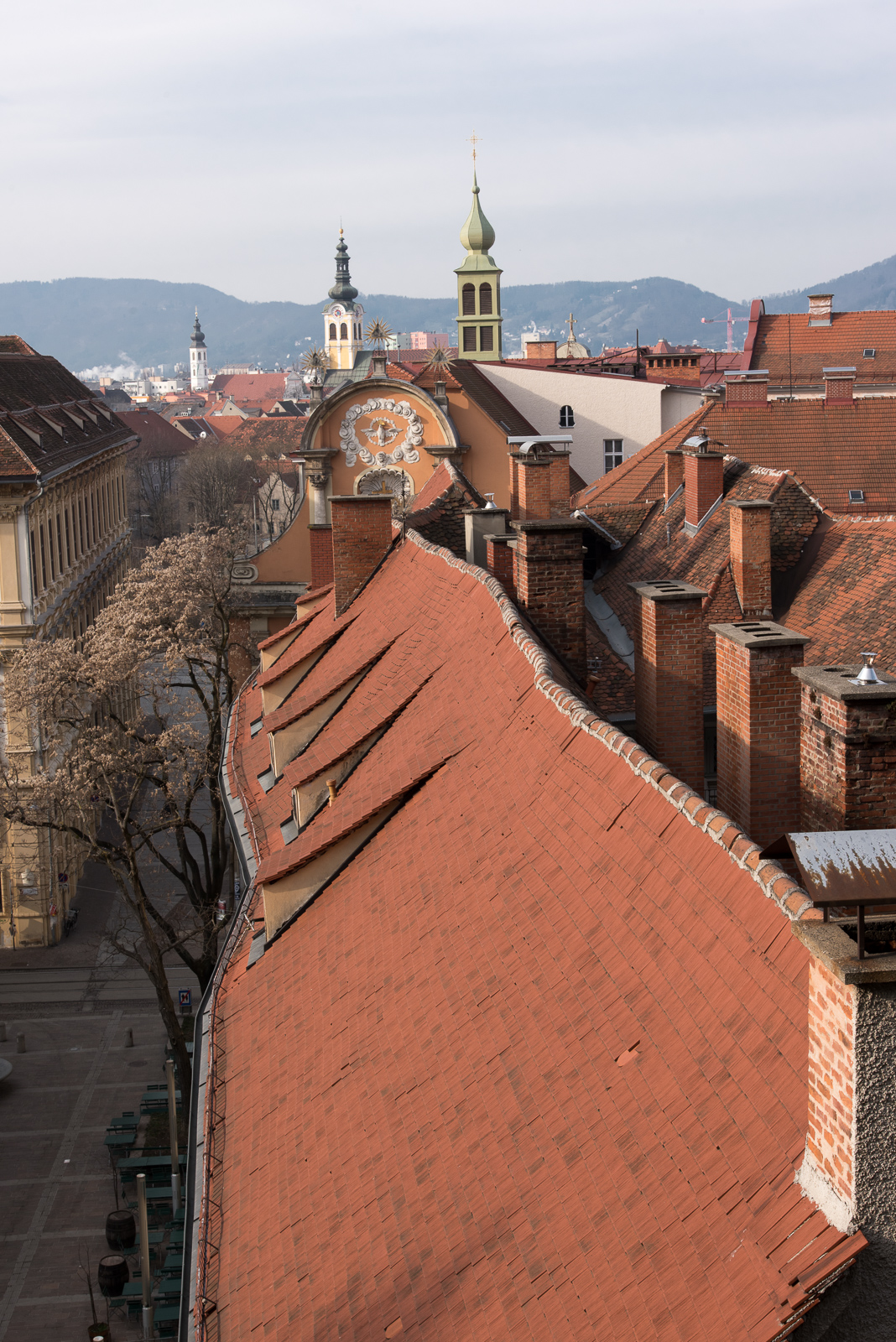 Vom “Kriegssteig” aus hatte man einen schönen Blick über die Dächer der Grazer Altstadt.