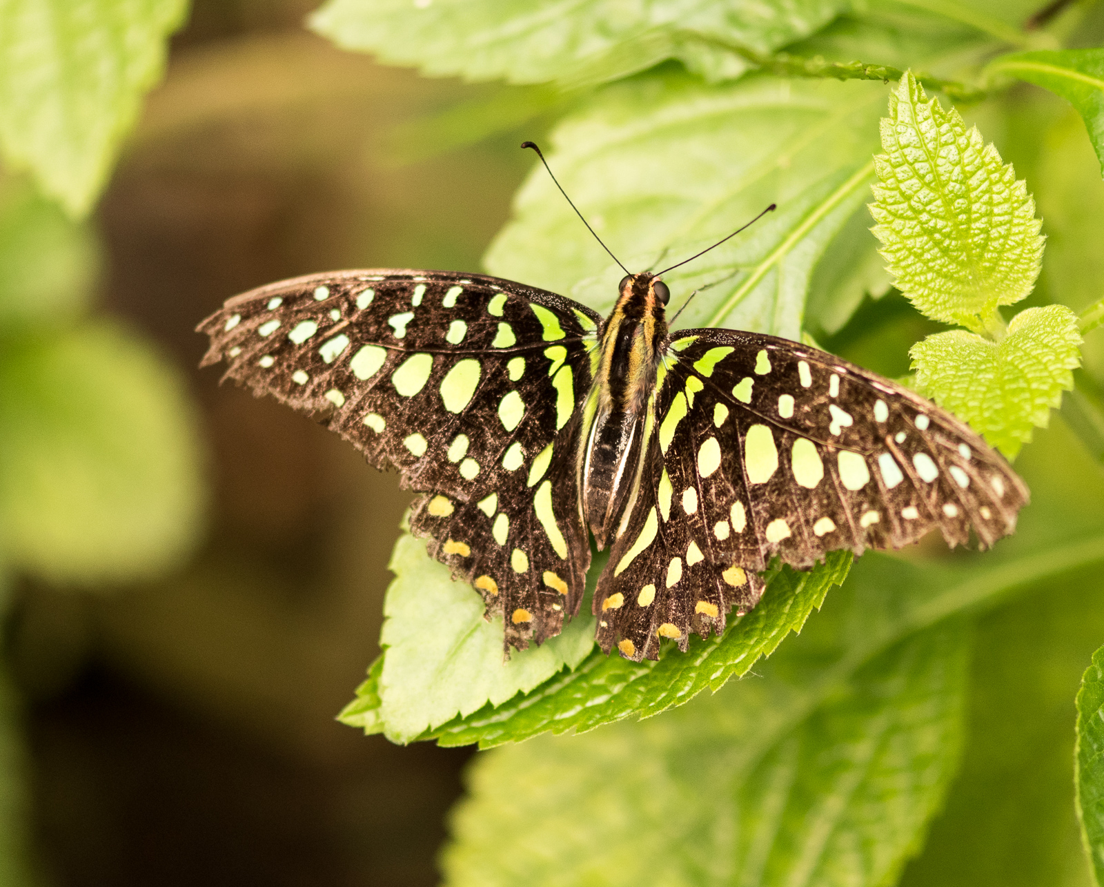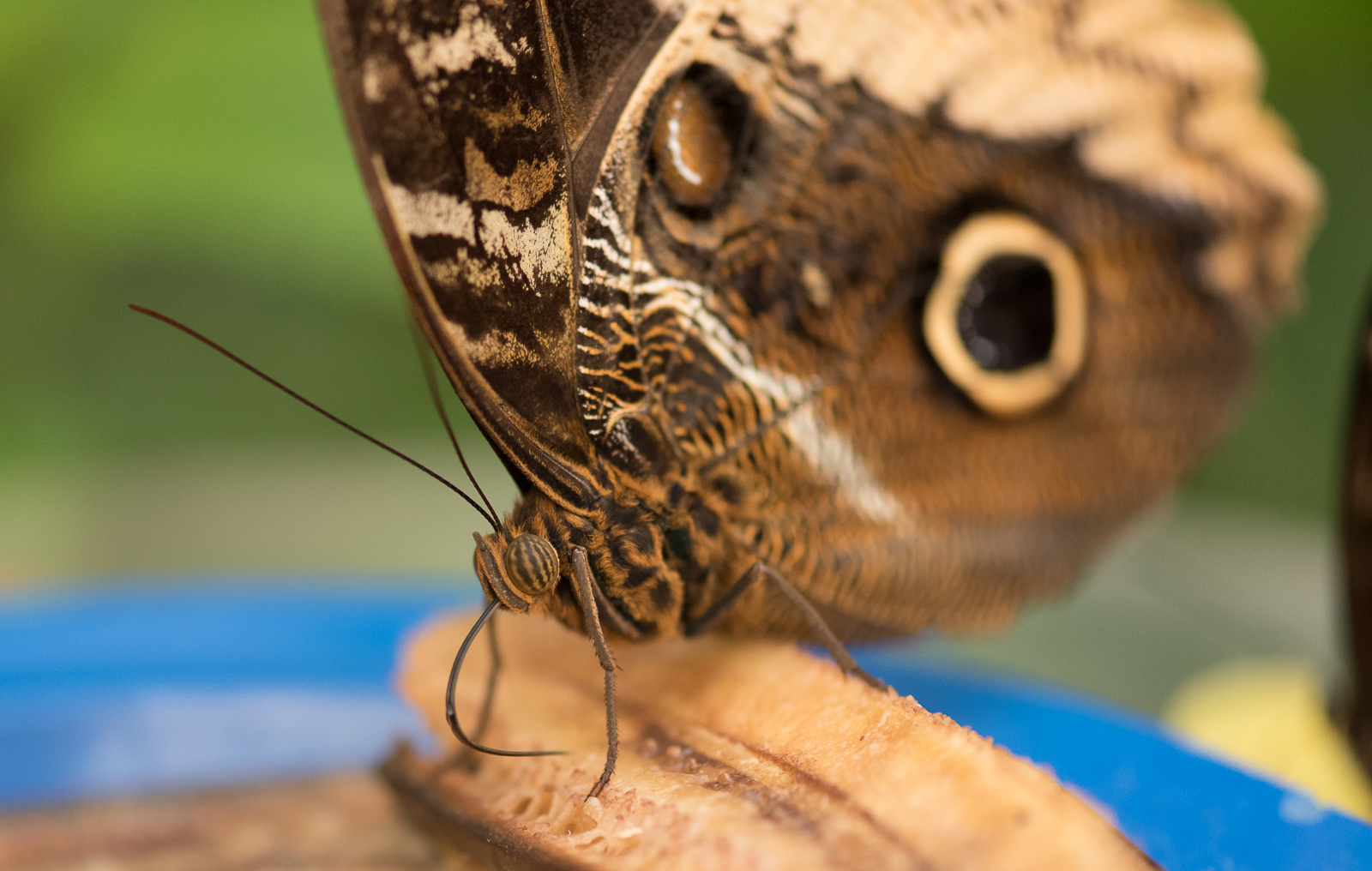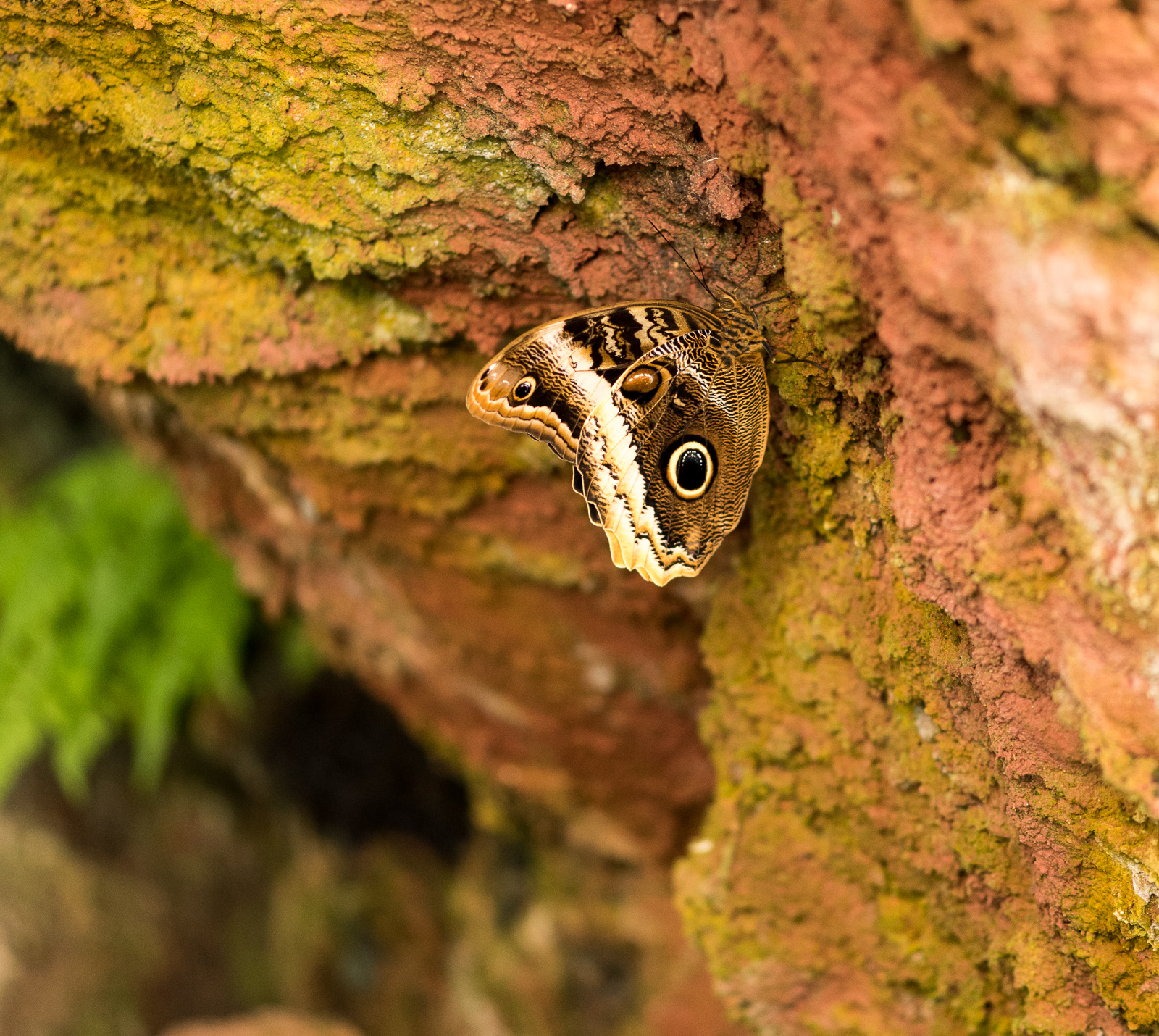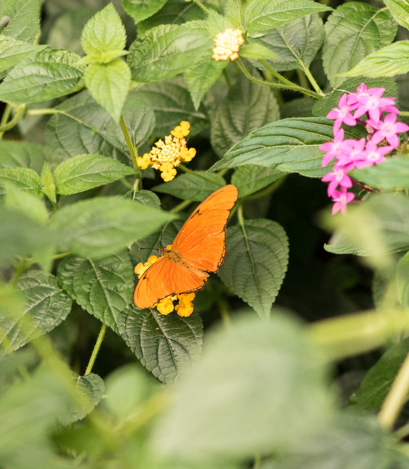 Das Schmetterlingshaus ist dann auch tatsächlich voll mit bunten, grossen und kleinen Schmetterlingen, die umherfaltern.