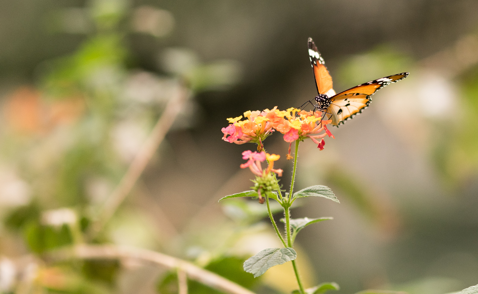 Das Schmetterlingshaus ist dann auch tatsächlich voll mit bunten, grossen und kleinen Schmetterlingen, die umherfaltern.