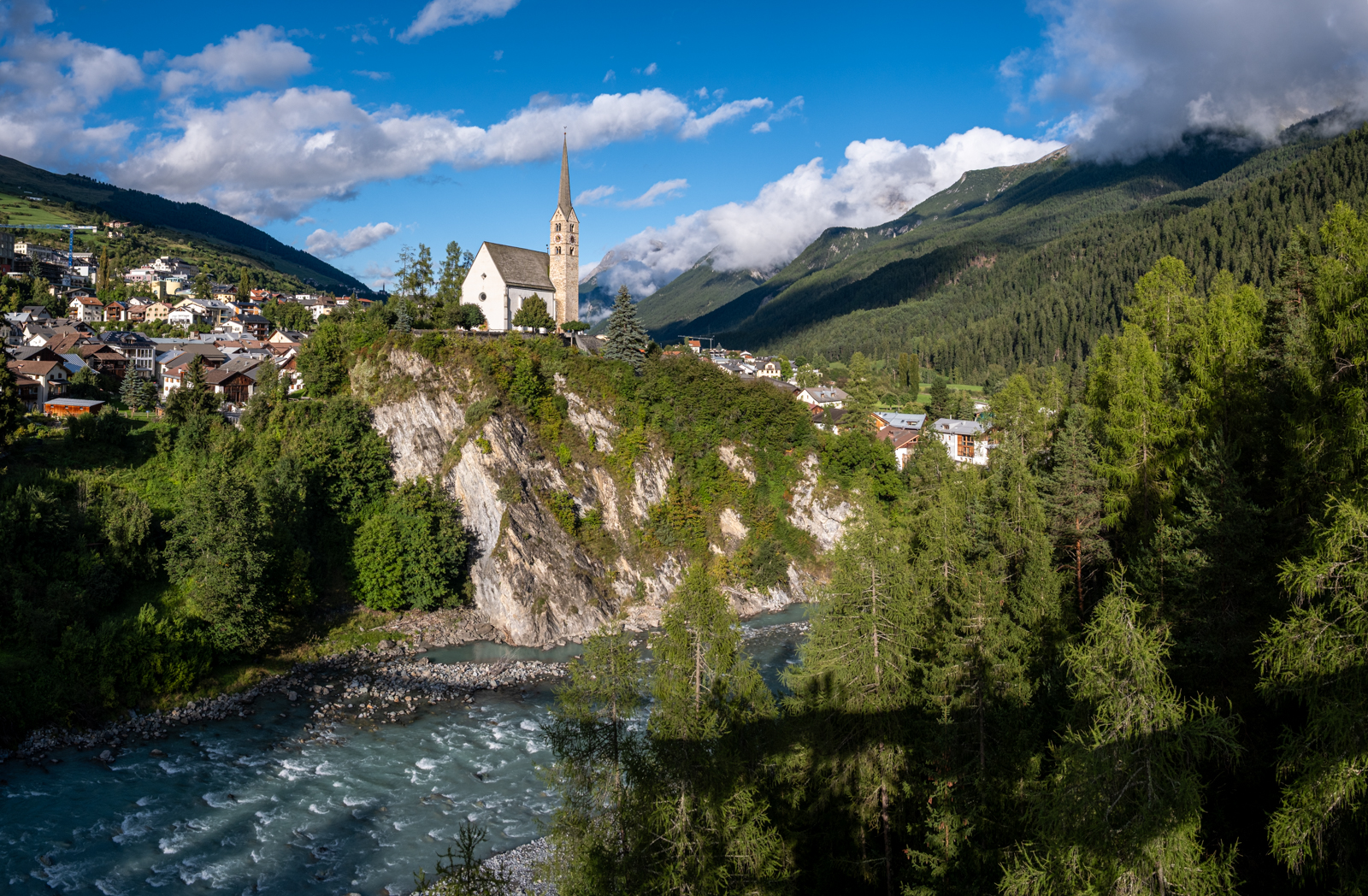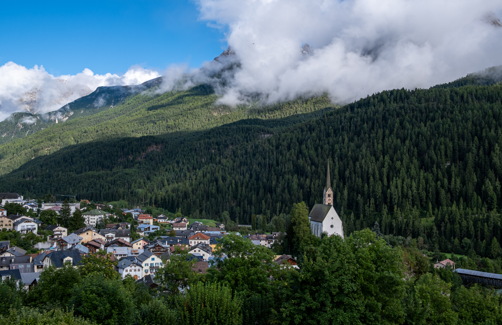 Am zweiten Tag strömte es vom Himmel und wir erledigten ein paar Dinge mit Bus und Bahn. Am Abend klarte es auf und wir unternahmen einen Spaziergang durch und um Scuol.
