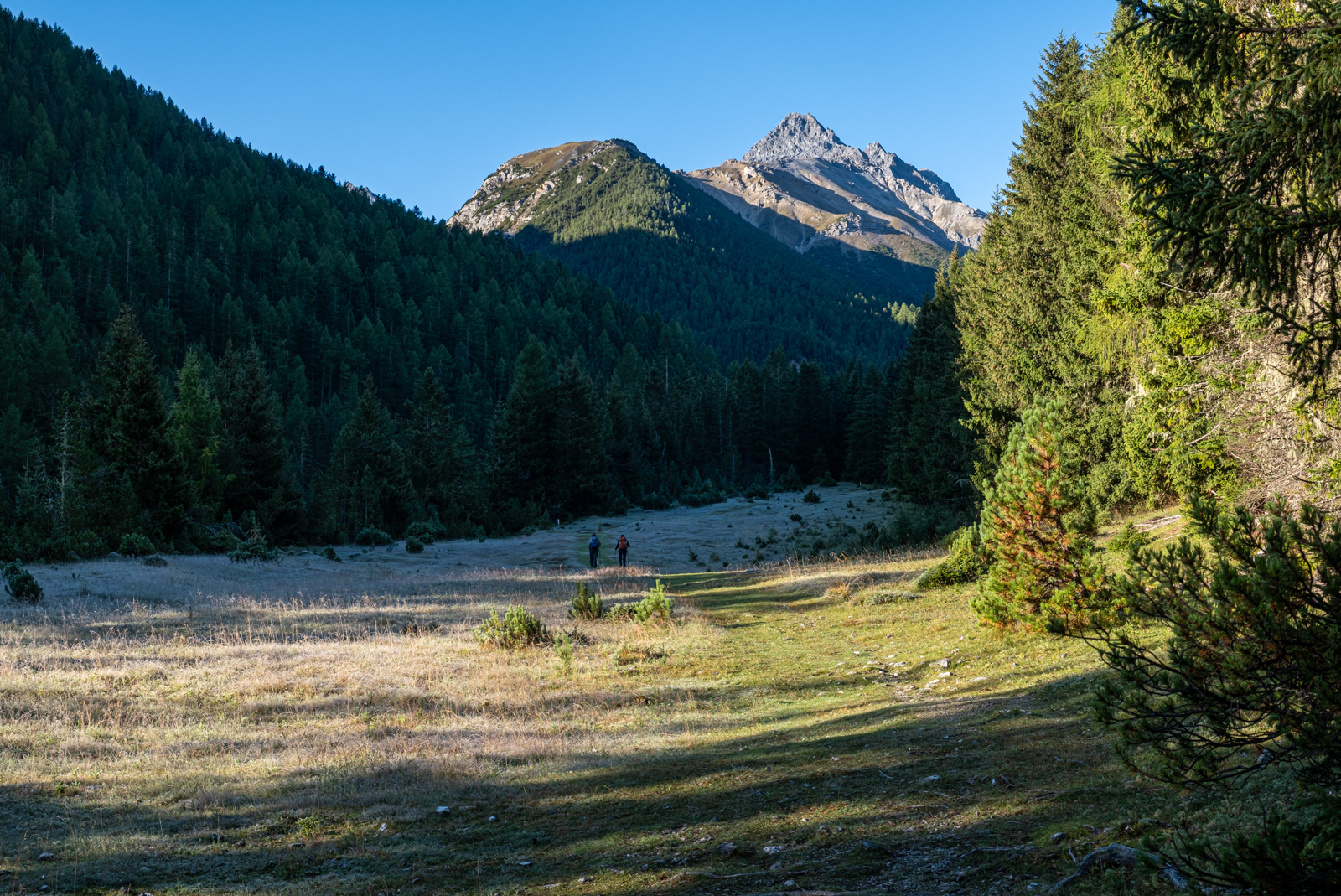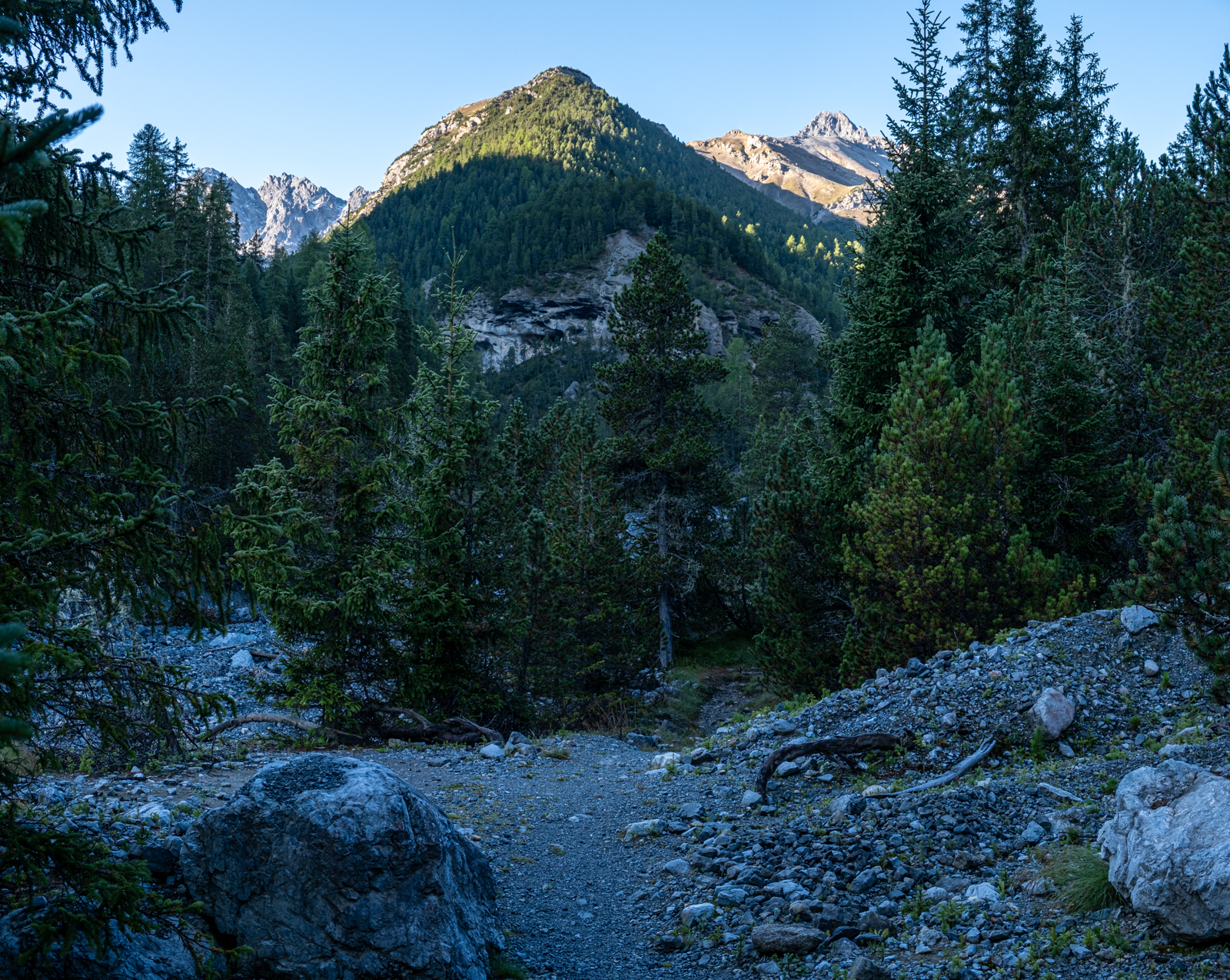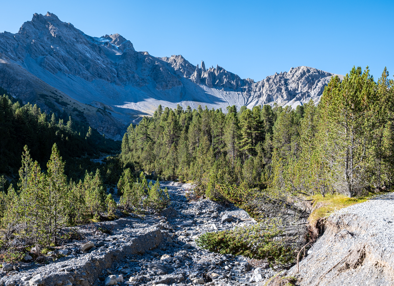 Das Val Mingèr ist Teil des Schweizerischen Nationalparks und tatsächlich lief uns mitten im Wald auch ein Ranger über den Weg.